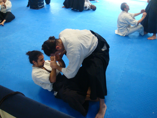 Una hora y media más tarde de lo previsto entramos en el Dojo de Iván. Es un local nuevo, lleno de luz, con mucha energía positiva. El sonido de los alumnos de Iván cayendo sobre el tatami duro de puzzle me quitó en seguida toda la pereza. Me apresuré para vestir la hakama.